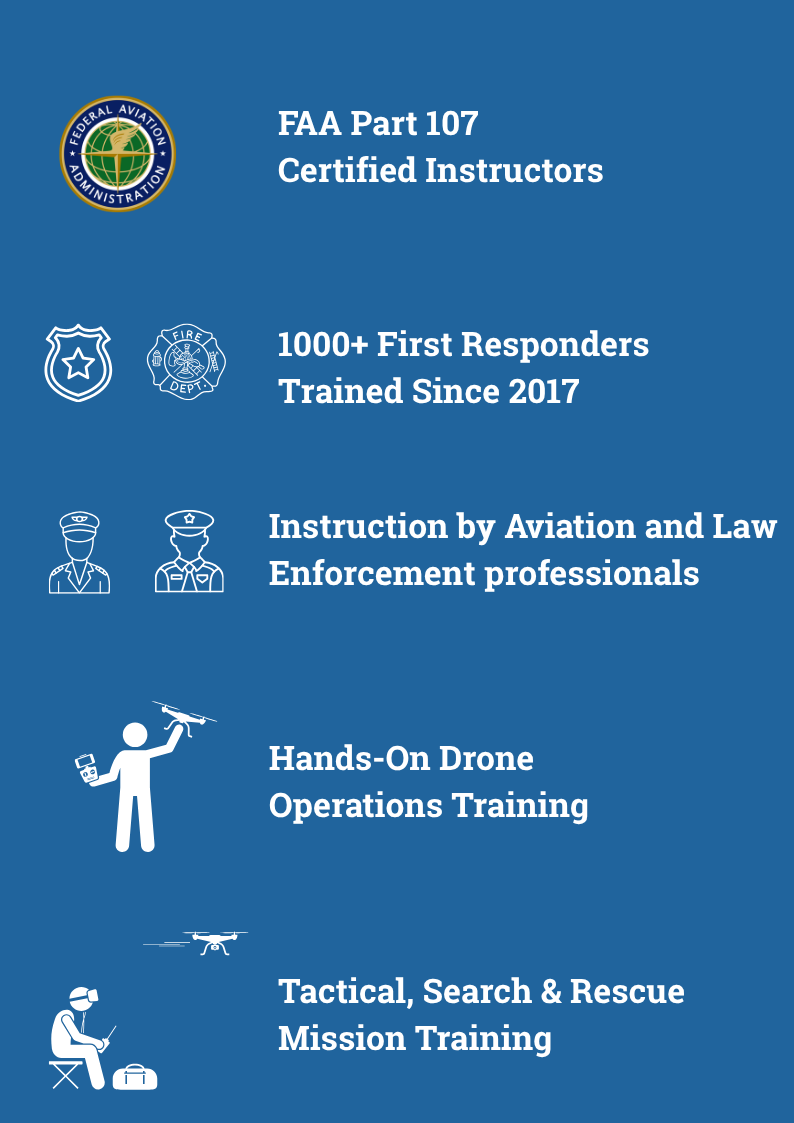 Check out our Basic Drone Training Classes and Advanced Drone Training Classes , meet Our Instructors, read Frequently Asked Questions about our training, and if you are not ready to request a Training Consultation, sign up for our First Responder Drone Newsletter to stay on top of drone news that matter to your profession.